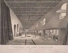 Andrew Yarranton, an English engineer and agriculturist, and Ambrose Crowley (a Stourbridge blacksmith and father of the more famous Sir Ambrose Crowley III) were commissioned to go to Saxony and if possible discover the methods employed.[2] They visited Dresden in 1667 and found out how it was made. In doing so, they were sponsored by various local ironmasters and people connected with the project to make the River Stour navigable. In Saxony, the plates were forged, but when they conducted experiments on their return to England, they tried rolling the iron. This led to two of the sponsors, the ironmasters Philip Foley and Joshua Newborough, erecting a new mill, Wolverley Lower Mill (or forge), in 1670. This contained three shops: one being a slitting mill, which would serve as a rolling mill, the others being forges. In 1678 one of these was making frying pans and the other drawing out blooms made in finery forges elsewhere. It is likely that the intention was to roll the plates and then finish them under a hammer, but the plan was frustrated by one William Chamberlaine renewing a patent granted to him and Dud Dudley in 1662. Yarranton described the patent as "trumped up".[5][6]
