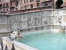 - ↑ Scappini, Chiara. History, Preservation, and Reconstruction in Siena: The Fonte Gaia from Renaissance to Modern Times. Kunsthistorisches Institut in Florenz. Accessed 15 August 2011.