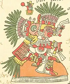 Tlāhuizcalpantēcuhtli [t͡ɬaːwisˈkaɬpanteːˈkʷt͡ɬi] is a principal member of the pantheon of gods within the Aztec religion, representing the Morning Star Venus.[1] The name comes from the Nahuatl words tlāhuizcalpan [t͡ɬaːwisˈkaɬpan] "dawn" and tēcuhtli [ˈteːkʷt͡ɬi] "lord".[2] Tlahuizcalpantecuhtli is one of the thirteen Lords of the Day, representing the 12th day of the Aztec trecena.