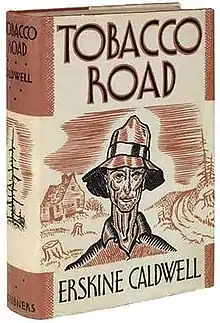 Tobacco Road is a 1932 novel by Erskine Caldwell about a dysfunctional family of Georgia sharecroppers during the Great Depression. Although often portrayed as a work of social realism, the novel contains many elements of black comedy and sensationalism which made it a subject of controversy following its publication. It was dramatized for Broadway by Jack Kirkland in 1933 and ran for eight years. A 1941 film version, played mainly for laughs, was directed by John Ford, with many of the darker plot elements altered or removed.