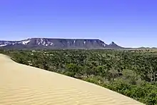 The "cerrado" landscape cover 87% of Tocantins and is characterized by extensive savanna formations crossed by gallery forests and stream valleys.[3] Cerrado includes various types of vegetation. Humid fields and "buriti" palm paths are found where the water table is near the surface. Alpine pastures occur at higher altitudes and mesophytic forests on more fertile soils. In the north of Tocantins the cerrado gives place to a zone of transition for the Amazon biome, near Tocantins River.