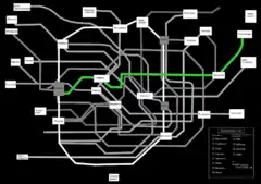 Unlike all other Tokyo subway lines, which were built to 1,435 mm (4 ft 8+12 in) or 1,067 mm (3 ft 6 in) gauges, the Shinjuku line was built with a track gauge of 1,372 mm (4 ft 6 in) to allow through operations onto the Keiō network. The line was planned as Line 10 according to reports of a committee of the former Ministry of Transportation; thus the rarely used official name of the line is the "Number 10 Shinjuku Line" (10号線新宿線, Jū-gō-sen Shinjuku-sen).[2]