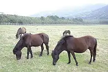 The Tokara (吐噶喇馬, Tokara-uma) (also known as the Kagoshima horse) is a Japanese horse native to the Tokara Islands, a group of islands in Kagoshima Prefecture at the southwestern tip of the island of Kyushu. Its height is about 100 to 120 centimetres (10 to 12 hands). Its coat color is predominantly seal brown. The Tokara has a good tolerance for heat and is used for agriculture, riding and sugar cane processing.