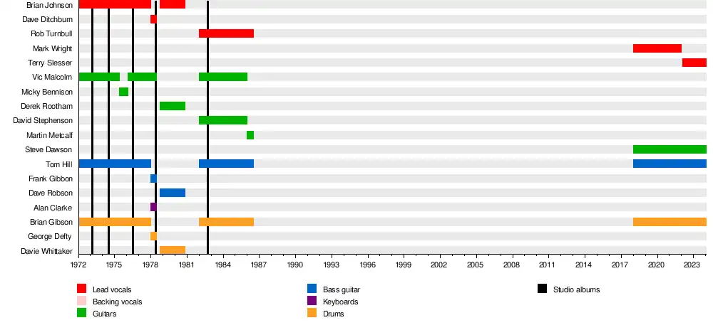 Past members | Brian Johnson Vic Malcolm Rob Turnbull David Stephenson Micky Bennison |