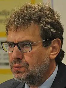The DSHV contested the 2016 Serbian parliamentary election on the electoral list of the Democratic Party. Going into the campaign, Žigmanov said that the party expected to win one seat in the new parliament.[28] This predication was accurate: Žigmanov received the sixteenth position on the list and, as it won sixteen mandates, was duly elected.[29] The election was won by the Serbian Progressive Party and its allies, and Žigmanov serves in opposition as a member in the Democratic Party's parliamentary group.