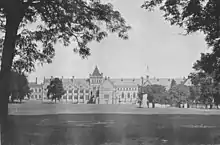 Knox retired in 1812, and was succeeded by his younger son, Thomas. The period of Knox's headmastership was one of national economic and political change, but at the school the greatest change was the increasing importance of cricket. John Abercrombie was the school's first cricket blue (for Cambridge) in 1839. In 1818, a nationwide commission visited Tonbridge to investigate on behalf of the reforming government. Over the next few years, a new scheme for the school was prepared and approved by the Lord Chancellor. New buildings were agreed upon by the governors, and a new dining room and dormitories were built. The school also bought the Georgian building on the High Street to the north of the new junior school, and it was renamed Judde House. This was the school's second boarding house, with the original buildings serving to house boys of the larger School House. In 1826, the governors bought the field which now contains the Head cricket ground, and the patches to the north and south of it, later to be called the Upper and Lower Hundreds. In 1838, Knox took the decision to level the Head, a considerable project, using labour and earth from the new railway workings in the town. The labourers often engaged in fights with the boys, as they were lodged nearby. The Head became the focal point of the school and was regarded as one of the most beautiful cricket grounds in the south of England. Thomas Knox died shortly after the completion of his cricket pitch, in 1843,[4] whilst preparing to preach in the parish church. His death brought to an end the 71-year reign of the Knox family.[5]