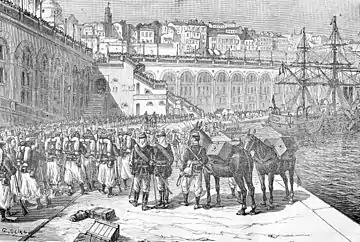 The early arrival of reinforcements from France and New Caledonia and the recruitment of Cochinchinese and Tonkinese auxiliary formations allowed Bouët to hit back at his tormentors. On 19 July chef de bataillon Pierre de Badens, the French commandant supérieur at Nam Định, attacked and defeated Prince Hoàng Kế Viêm's besieging Vietnamese army, effectively relieving Vietnamese pressure on Nam Định.[8]