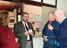 ![]() Clarke, second left, with his then constituency residents in Milton Malsor village hall at the launch of their Parish Plan, January 2003 | |