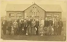 The provision of state-administered education was important to the colonial governments of Australia. National schools, established in 1848 in New South Wales, were continued in Queensland following the colony's separation in 1859. Following the introduction of the Education Act 1860, which established the Board of General Education and began standardising curriculum, training and facilities, Queensland's national and public schools grew from four in 1860 to 230 by 1875.[8] The State Education Act 1875 provided for free, compulsory and secular primary education and established the Department of Public Instruction. This further standardised the provision of education, and despite difficulties, achieved the remarkable feat of bringing basic literacy to most Queensland children by 1900.[9][1]