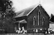 Toowoomba North State School opened as the Mort Estate National School on 6 September 1869 on land donated by pastoralist and politician, James Taylor, MLA. The population of Toowoomba at the time was 3000. The school was opened as a Boys School, with an enrolment of 141 boys, and a Girls and Infants School, with a commencing enrolment of 113 pupils. Both were housed in a brick building facing Mort Street.[13][14][15] Within a year, the school's enrolments had doubled to 286 enrolled at the Boys School with an average attendance of 140, and 261 enrolled at the Girls and Infants School with an average attendance of 130.[16][1]