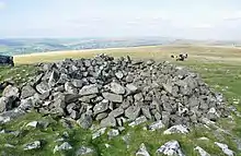 A tor cairn is a prehistoric cult site occurring in the British Isles, especially in Cornwall and Devon but also in Wales. It consists of a circular enclosure of stones or a platform of loose rocks surrounding a natural tor, sometimes encircled by a ditch. The diameter of the roughly 35 tor cairns ranges from 12 to over 30 metres and their height varies from 0.5 to 4.0 metres. There is usually an entrance to the enclosed area and pits in the ground between the rock outcrop (tor) itself and the enclosure.[1]
