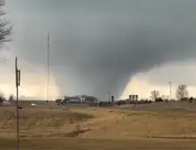 A tornado outbreak, spawned from a strong, negatively tilted shortwave trough, struck the Midwestern United States beginning on March 5. The state of Iowa was particularly affected. Six people were killed by a violent, long-tracked EF4 tornado near Winterset that completely destroyed multiple homes, a few of which were leveled or swept away. The tornado also caused severe damage as it impacted the outskirts of Norwalk and Pleasant Hill before dissipating near Newton, after nearly 70 mi (110 km) miles on the ground.[36][37] An EF3 tornado near Chariton tore through a campground at Red Haw State Park, killing one person there. The same tornado also downed numerous trees, and badly damaged or destroyed multiple homes and other structures along its path. A strong EF2 tornado caused significant damage to trees, power poles, a baseball field, and a manufactured home as it clipped the outskirts of Allerton, while an EF1 tornado caused moderate damage in the town of Vinton. Near Garden Grove, outbuildings were destroyed, power poles were snapped, and a house had its roof torn off as a result of an EF2 tornado. Two other EF2 tornadoes caused damage to homes, trees, and outbuildings as they passed near the towns of Kellogg and Tama.
