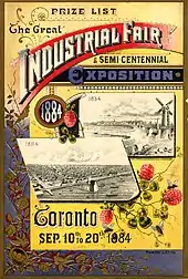 An advertisement for the 1884 Toronto Industrial Exhibition. Established in 1879, the exhibition would be renamed the Canadian National Exhibition in 1912.