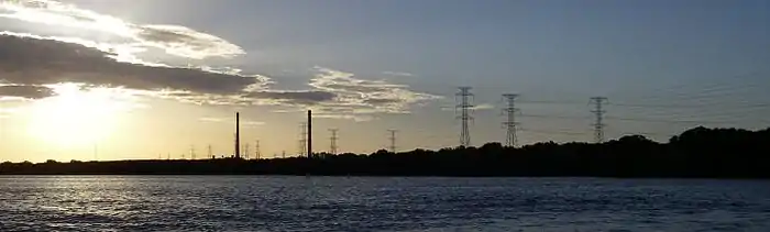 Torrens Island Power Station is located on Torrens Island, near Adelaide, South Australia and is operated by AGL Energy. It burns natural gas in eight steam turbines to generate up to 1,280 MW of electricity. The gas is supplied via the SEAGas pipeline from Victoria, and the Moomba Adelaide Pipeline System (MAPS) from Moomba in the Cooper Basin.[1] The station is capable of burning either natural gas or fuel oil.[2] It is the largest power station in South Australia and was formerly the largest single power station user of natural gas in Australia.
