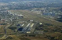 The airport is at an elevation of 499 feet (152 m) above mean sea level. It has two asphalt-paved runways: 14R/32L is 3,500 by 45 metres (11,483 ft × 148 ft) and 14L/32R is 3,000 by 45 metres (9,843 ft × 148 ft).[1]