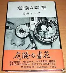 - 1 2 The title of this book abounds in complications. The first (a trivial one) is that it appears as 危險な毒花 (with the older form of the character for ken) on the front and spine of the dust jacket and on the title page, but as 危険な毒花 (with the newer form) on the spine itself, the half title, the colophon, and the front of the obi. Secondly, the reading of the last two characters of the title is problematic. The book itself does not appear to specify the reading anywhere (even though its colophon gives the reading "Tokiwa"). Japanese dictionaries of Sino-Japanese do not include the combination 毒花; dictionaries of Japanese such as Kōjien do not list it under any of its more obvious readings: dokubana, dokuhana, dokuka or dokka. Accounts in Japanese of this book, such as Moriyama's piece in Nihon Shashinka Jiten or Nihon Shashinshi Gaisetsu (日本写真史概説; Tokyo: Iwanami Shoten, 1999; ISBN 4-00-008381-3) do not give the reading. Therefore somebody who has to provide a reading for the title will normally just guess or depend on others' guesses, and Kiken na Dokubana and Kiken na Kokuka are attested in OPACs, bibliographic databases and so forth. However, the "ruby" あだばな (i.e. adabana) is provided for the title in the potted chronology for Tokiwa on p.159 of Yokohama Saigen (see "Books by Tokiwa"), and it is highly unlikely that this was done without consultation with Tokiwa herself. Both Kōtarō Iizawa and Luisa Orto specify adabana, although without comment. Iizawa, "The evolution of postwar photography", in Anne Wilkes Tucker et al., The History of Japanese Photography (New Haven, CT: Yale University Press, 2003; ISBN 0-300-09925-8), p.217; Orto, "Toyoko Tokiwa", in Orto and Matsuda Takako, "Artist Profiles", in Tucker et al., p.364. The third problem is of how to gloss the title in English. Iizawa and Orto do so as "Dangerous fruitless flowers". Adabana indeed means "fruitless flower(s)", but it is normally written 徒花 and does not imply toxicity. By metaphorical extension, it can mean "prostitute(s)". Adabana is sometimes written 仇花, in which the character for ada means "harm" or "malice" (in addition to "enemy", etc.). Meanwhile, the character 毒 does mean "toxicity". Thus the title means "Dangerous fruitless flowers", "Dangerous prostitutes", "Dangerous toxic flowers", or similar.