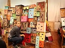 Her multi-media sculptural installation One Thousand Shacks (2016) conveyed the "precarious individual existence" of people living in extreme poverty. Composed of a 16-foot by 10 foot wall of small-scale shacks, photographs, wire, wood, and other materials were used in each shack to capture people "living the best they can in excruciating circumstances," portraying her subjects "not as powerless victims, but rather as defiant and hopeful members of humanity."[11] A variation of One Thousand Shacks titled Tenement Rising was included in Snelling's Naked City solo show in Cologne, Germany in late 2016.[12]