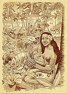Beyond the Mai Tai, Bergeron's other more famous drinks included the Fog Cutter and the Scorpion Bowl.[11] Both drinks were served in a specific and highly decorated mug or bowl. His take on a Hot buttered rum was also an early example calling for a specific ceramic mug, in this case a skull.[12] The Scorpion Bowl in particular and its many variations proliferated onto the cocktail menus of virtually all subsequent Tiki bars.[13] The menus from his restaurants could list dozens of different tropical drinks.[14] As was the case with Don the Beachcomber, rum was the hallmark ingredient in most of his cocktails, but Vic is also credited with creating the Eastern Sour, which employed less common (for Tiki drinks) rye whiskey, and another drink using even more rarely used tequila (the Mexican El Diablo).