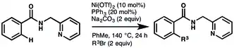 - ↑ Aihara, Yoshinori; Chatani, Naoto (2013-04-10). "Nickel-Catalyzed Direct Alkylation of C–H Bonds in Benzamides and Acrylamides with Functionalized Alkyl Halides via Bidentate-Chelation Assistance". Journal of the American Chemical Society. 135 (14): 5308–5311. doi:10.1021/ja401344e. PMID 23495861.