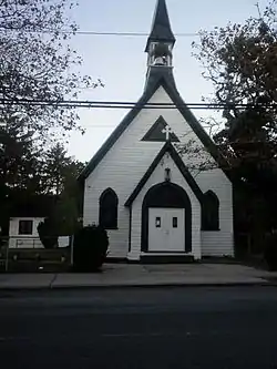 Trinity Chapel, also known as St. John's Church and Beth-El Temple Church of God in Christ, is a historic Episcopal church at 1874 Mott Avenue in Far Rockaway, Queens, New York. It was built in 1858 to the design of architect Richard Upjohn (1802–1878). It is a frame Gothic Revival style chapel on a brick foundation and three bays wide by five bays long. It has a steeply pitched roof and sided in wood shingles. Atop the roof is a wooden belfry with steeply pitched pyramidal roof. It was founded as Trinity Chapel as a mission of Trinity Church in Hewlett, New York. Its name was changed to St. John's of Far Rockaway in 1881 when it became an independent parish. St. John's merged with Trinity Church in 1974 and the building was sold the following year to Beth-El Temple Church of God in Christ.[2]