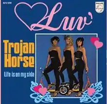 "Trojan Horse" is the fifth single by the Dutch girl group Luv', released in autumn 1978 by Philips/Phonogram Records. This million-seller appears on some editions of the group's debut album, With Luv' (1978), and was a successful hit record in a large part of continental Europe, Israel, South Africa, Zimbabwe, Argentina and New Zealand. It was a minor hit in Australia and Canada.