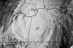 Heavy rains fell along the frontal boundary ahead of the system,[30] with a peak total of 9.01 in (229 mm) of precipitation observed in Aimwell, Louisiana.[9] Flooding occurred across eastern Louisiana, central Mississippi, the western Florida Panhandle, central Tennessee, western Virginia, and eastern New York. In Jackson, Mississippi, the heavy precipitation established a new daily rainfall record for October 16 and a new 24-hour rainfall record for the month of October. Eight bridges were damaged in Jackson County, Tennessee, due to the floods. Heavy rains left heavy damage to the soybean and corn crops in Hickman and Marion counties in Tennessee. Six tornadoes were reported in association with this tropical depression, including two in Alabama, two in northwest Florida, and two in North Carolina. One person died due to flooding in Mississippi.[30]