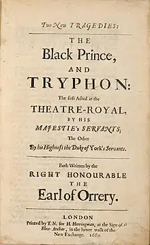 Tryphon is a 1668 tragedy by the Irish writer Roger Boyle, 1st Earl of Orrery. It was originally staged by the Duke's Company at the Lincoln's Inn Fields Theatre in London. The original cast is unknown.[1]