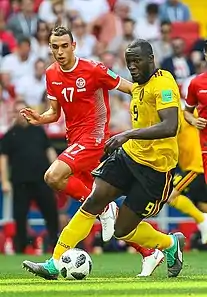 In Group D, Tunisia drew Euro 2020 semi-finalists Denmark 0−0 in a rather decent display by the African side.[89] But a 0−1 loss against Australia followed, severely hampering Tunisia's odds to progress. A 1−0 victory over France courtesy of a goal from Wahbi Khazri was not enough to seal Tunisia's place in the last 16 as Australia's Mathew Leckie goal against Denmark meant the Asian representative placed second.[90][91]