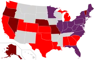 There are many toll roads in the United States; as of 2006, toll roads exist in 35 states, with the majority of states without any toll roads being in the West and South. In 2015, there were 5,000 miles (8,000 km) of toll roads in the country.[1]