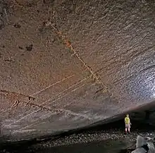More recently, there have been two attempts at commercialization – in 1947 and in 1972 – neither venture lasted long, and today few traces remain. In 1972, the venture failed when Hurricane Agnes caused floods throughout the region; Tytoona, at that point called Indian River Caverns, was completely filled with water, and all the steps, railings, and pathways were washed away into the cave. The remains of this failure make up much of the logjam which lies in a bend in the cave, about 122 meters (400 feet) in.