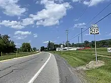 US 522 contains several segments that are part of the National Highway System. The U.S. highway is part of the main system from Virginia State Route 37 (SR 37) near Winchester to Interstate 70 (I-70) at Warfordsburg, Pennsylvania. US 522 is also part of the main system from the Pennsylvania Turnpike (I-76) at Fort Littleton to Pennsylvania Route 35 (PA 35) at Shade Gap and from the south end of its concurrency with US 22 at Mount Union to its northern terminus near Selinsgrove.[5][6][7][8] US 522 is a National Highway System principal arterial in four places in Virginia, including its concurrencies with SR 3 and US 15 Bus. in Culpeper, on its concurrency with US 211 between Sperryville and Massies Corner, from its southern junction with SR 55 to I-66 in Front Royal, and from the south end of its concurrency with US 11 in Winchester to SR 37 near Winchester.[5][9] The highway is also a principal arterial from PA 35 at Shade Gap to US 22 at Mount Union.[8] US 522's other junctions with highways part of the National Highway System along its 159.26-mile-long (256.30 km) course through Virginia include I-64 near Gum Spring; US 15 and US 29 in Culpeper; US 340 in Front Royal; and I-81, US 17, US 50, and SR 7 in Winchester. Other major junctions include one with West Virginia Route 9 (WV 9) in Berkeley Springs along its 18.74 miles (30.16 km) in West Virginia; I-68, I-70, and US 40 in Hancock during its 2.35-mile-long (3.78 km) streak across Maryland; and US 30 in McConnellsburg and US 22 and US 322 in Lewistown during its 128.237-mile-long (206.377 km) route through Pennsylvania.[5][6][7][8]