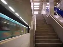 Therefore, from 1999 onwards, all stations were gradually brought to a uniform height of 80 cm above the rail level in extensive construction work, which allows stepless entry into the trains of the U4 series. The aboveground stations received completely newly built platforms, while at the tunnel stations, as originally planned, the ballast bed could be lowered. Only at the railway stations Schweizer Platz and Südbahnhof, which were not designed for this purpose, the platforms themselves had to be raised. Therefore, the platforms of these stations are now about 24 cm higher than the foot of the stairs and escalators that lead down to the platforms. This difference in height was or is compensated until today by the installation of new escalators by ramps.