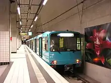 The U4 is a service on the Frankfurt U-Bahn. At the time of the services's inauguration in 1980, it ran from the central railway station to the Konstablerwache and then continued along the Berger Straße all the way up to Seckbacher Landstraße in Bornheim, making it the first service to run entirely underground over its total length. In 2001, the U4 was extended from the central railway station to Bockenheimer Warte, with an additional stop at the Frankfurt Trade Fair along the way. In 2008, some of the trains started continuing past Seckbacher Landstraße to Schäfflestraße and then overground to Enkheim together with the U7.