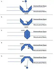 7. 1 2 Crichton, Paul G.; Lee, Yang; Kunji, Edmund R. S. (2017-03-01). "The molecular features of uncoupling protein 1 support a conventional mitochondrial carrier-like mechanism". Biochimie. UCP1: 40 years and beyond. 134: 35–50. doi:10.1016/j.biochi.2016.12.016. ISSN 0300-9084. PMC 5395090. PMID 28057583.