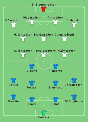 - 1 2 "Tactical Line-ups – Italy v Iceland" (PDF). UEFA.com. Union of European Football Associations. 14 July 2022. Retrieved 14 July 2022.