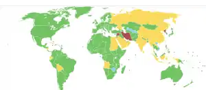 The UN General Assembly of 2 April 2013 (71st Plenary Meeting) adopted the ATT as a resolution by a 154-to-3 vote with 23 abstentions. North Korea, Iran, and Syria voted in opposition. China and Russia, among the world's leaders in weapon exports, were among the 23 nations that abstained.[23] Cuba, India, Indonesia, Myanmar, Nicaragua, Saudi Arabia, and Sudan also abstained. Armenia, Dominican Republic, Venezuela, and Vietnam did not vote.[9]