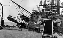 She remained in the Atlantic Reserve Fleet until 30 December 1913, when she was sent to Pensacola, Florida for use as a support ship for the creation of the Naval Air Station Pensacola. She took on a group of nine officers and twenty-three enlisted men along with aircraft and other equipment. She arrived there on 20 January 1914, where the men set about establishing the base. In April, Mississippi received orders to carry a 500-man detachment from the 2nd Marines, who had by then transferred to Pensacola, to Tampico, Mexico after the Tampico Affair that saw a minor confrontation between Mexican soldiers and USN sailors. She also carried a pair of seaplanes and supporting equipment. The ship got underway for Veracruz, Mexico on 21 April, arriving there four days later.[5] On April 25, a Curtiss Model F she carried flew in the first operational use of naval aircraft, performing a 28-minute reconnaissance flight over the port.[6] The next day, she transferred both seaplanes to shore, along with their ground crews and other equipment. The aircraft operated under command of Patrick N. L. Bellinger in the area for a month and a half during the occupation of Veracruz, conducting reconnaissance and searching the surrounding sea for naval mines, supported by men from Mississippi. In late May, the ship departed for Pensacola, where she remained until 28 June, thereafter steaming north for Hampton Roads.[5]