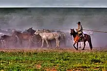 The Ujumqin has a remarkable aptitude for work.[1] The breed is mainly used as a saddle horse and transport horse.[4] Ujumqin mares are milked for their milk: lactation lasts an average of 125 days, with an average yield of 350 kg per lactation.[1]