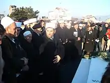 There have been rumors that Rugova converted to Catholicism just before he died. These rumors have never been confirmed by his family nor other source, and one of his closest associates, Sabri Hamiti, in an essay published on the first anniversary of his death, refuted them. He said that Rugova referred to himself as a ‘symbolic Muslim’.[13] The Chancellor of the Catholic Church of Kosovo, Don Shan Zefi, in an interview for Kosovo's national television,[14] said that there is no evidence of Rugova's conversion to Catholicism or baptism. Zefi denied that he had baptized Rugova. Though he had a state funeral service, the head of the Islamic Community of Kosovo, together with many imams conducted Islamic funeral prayers for Rugova. His grave, located at a hilltop in Prishtina, is oriented perpendicular to Mecca, in accordance with Muslim tradition.