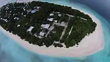 Ukulhas is close to the Northern boundary of Alif Alif Atoll, at 72° 51′ 52" E, 04° 12′ 54" N. The island is 71.68 km (45 mi; 39 nmi) west of the country's capital, Malé.[2] It is an oval-shaped, flat coral sand cay, oriented North-West to South-East, 1025 meters long, 225 meters wide, for an area of 17.4 hectares.[3][4]