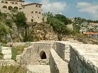 Ulcinj Old Town (Serbian: Стари град Улцињ / Stari grad Ulcinj; Albanian: Qyteti i vjetër i Ulqinit) or Ulcinj Castle (Serbian Cyrillic: Калjаја; Albanian: Kalaja e Ulqinit) is an ancient castle and neighborhood in Ulcinj, Montenegro. Today mostly inhabited by Albanians, it was built by the Illyrians on a small peninsula at the right side of the Pristan Gulf, which is part of the Adriatic Sea. Today, oldest remains are the Cyclopean Wall. The castle has been restored many times since it was first built although major changes were made by the Byzantinians, Serbs, Venetians, and Ottomans. The modern city of Ulcinj was built outside of this castle.