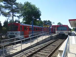 The through trains of the AKN trunk line (A1) as a rule stop on the two outer tracks 1 and 3 and the middle track 2 is used by trains on line A2. The timetable allows for direct connections between the two lines with a transition time of 1 to 2 minutes. A3 services begin and end mostly on platform track 3, but on weekends and public holidays platform track 2 is usually used. Through trains on line A2 from Norderstedt Mitte towards Kaltenkirchen also stop on platform track 3.