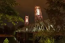 The Union Street Railroad Bridge is a vertical lift, Pratt through truss bridge that spans the Willamette River in Salem, Oregon, United States, built in 1912–13. It was last used by trains in the early 1990s and was sold for one dollar in 2003 to the City of Salem, which converted it to bicycle and pedestrian use in 2008–2009. It was added to the National Register of Historic Places in 2006.