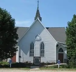 Scotch Ridge United Presbyterian Church was established on August 13, 1853. On that day Robert McElroy went to Chariton, Iowa to get the charter. The first church building was built in 1857 for $1,000.[2] Pete Schooler and his wife sold two acres of the land for $30 on January 3, 1865, for a new Presbyterian Churchyard. On April 28 of the same year William Hastie and his wife sold one acre of adjacent land for $25 for a cemetery. The present frame church building was built in 1883 for $4,000 in the Gothic Revival style.[2] Additional land for the cemetery was added in 1898 and 1971. An additional fellowship hall wing was added in 2010.