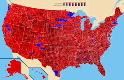 - ↑ McGovern carried only one county-equivalent in Arizona (Greenlee), Illinois (Jackson), Louisiana (West Feliciana Parish), Maine (Androscoggin), Maryland (Baltimore), North Dakota (Rolette), Pennsylvania (Philadelphia), Virginia (Charles City), and West Virginia (Logan)