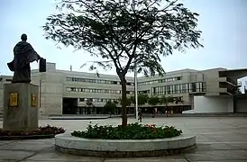 In the mid-1960s, due to the need for even more space, several faculties of the university began to move to the Ciudad Universitaria site, where 17 of the 20 faculties of the university are currently located.[88] This new campus is located in an area that housed archaeological complexes of the Maranga Culture, these were restored and protected —as in the case of Huaca San Marcos—, after having been partially destroyed during the construction of Av. Venezuela in the 1940s. In 1969, the system of organization by academic departments —today academic schools— was also introduced.[89] On September 22, 1984, the current statute of the university was promulgated. With nearly 40,000 students and more than 4,000 faculty, the university offers undergraduate studies in 65 areas, master's degrees in 77, and doctorates in 27, making it the largest academic offer in the country today. It currently has 20 faculties grouped into 6 main blocks, its academic departments publish several specialized journals and it operates 3 important museums in Lima as well as research institutes.[90][91] According to UNESCO criteria and indicators, the University of San Marcos is the only university in Peru that covers the various areas of knowledge such as pure sciences, human sciences, historical-social sciences, health sciences, economic-business sciences, and techniques and engineering.[6][92]