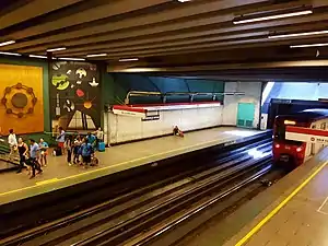 Universidad de Santiago is an underground metro station on the Line 1 of the Santiago Metro, in Santiago, Chile. Is named for the nearby University of Santiago. The station is adjacent to the Evangelical Cathedral of Santiago and to the main bus stations in the city. It was opened on 15 September 1975 as part of the inaugural section of the line between San Pablo and La Moneda.[2]