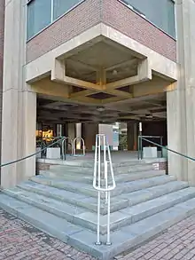 The Henry Charles Lea Library and Reading Room addition (1905) expanded the library eastward: The Duhring Wing (1915) expanded the library's bookstacks southward. It was converted into office space in 1964.[7] The Horace Howard Furness Reading Room addition (1931) expanded the library westward, and housed his Shakespeare collection until 1963.[8]: 166 It was converted into the Arthur Ross Gallery in 1983. The 1986–1991 restoration removed interior partitions, and restored the full 4-story height of the Main Reading Room.[9] |