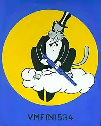 Marine Night Fighter Squadron 534 (VMF(N)-534) was a United States Marine Corps night fighter squadron that was commissioned during World War II. It was the fourth night fighter squadron commissioned in the service[2] and participated in limited combat operations throughout 1944 and 1945 during Marine Corps operations over Kwajalein Atoll and the Mariana Islands.[3][4] The squadron was decommissioned on May 31, 1947, as part of the post-war draw down of the service. Since then, no other Marine Corps squadron has carried the lineage and honors of VMF(N)-534.