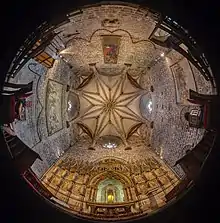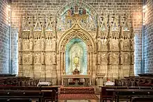 Excavations of Almoina Archaeological Centre have unearthed the remains of the ancient Visigothic cathedral, which later became a mosque.[3] There is documentary evidence that some decades after the Christian conquest of the city (1238), the mosque-cathedral remained standing, even with the Koranic inscriptions on the walls, until 22 June 1262, when the then bishop Andreu d'Albalat [4] resolved to knock it down and build a new cathedral in its place according to the plans of the architect Arnau Vidal.[5] Hypothetically, the ancient Muslim mosque would correspond with the current transept of the cathedral, the Apostles' gate would be the entrance to the mosque and the Almoina ("alms") gate the mihrab.[6]